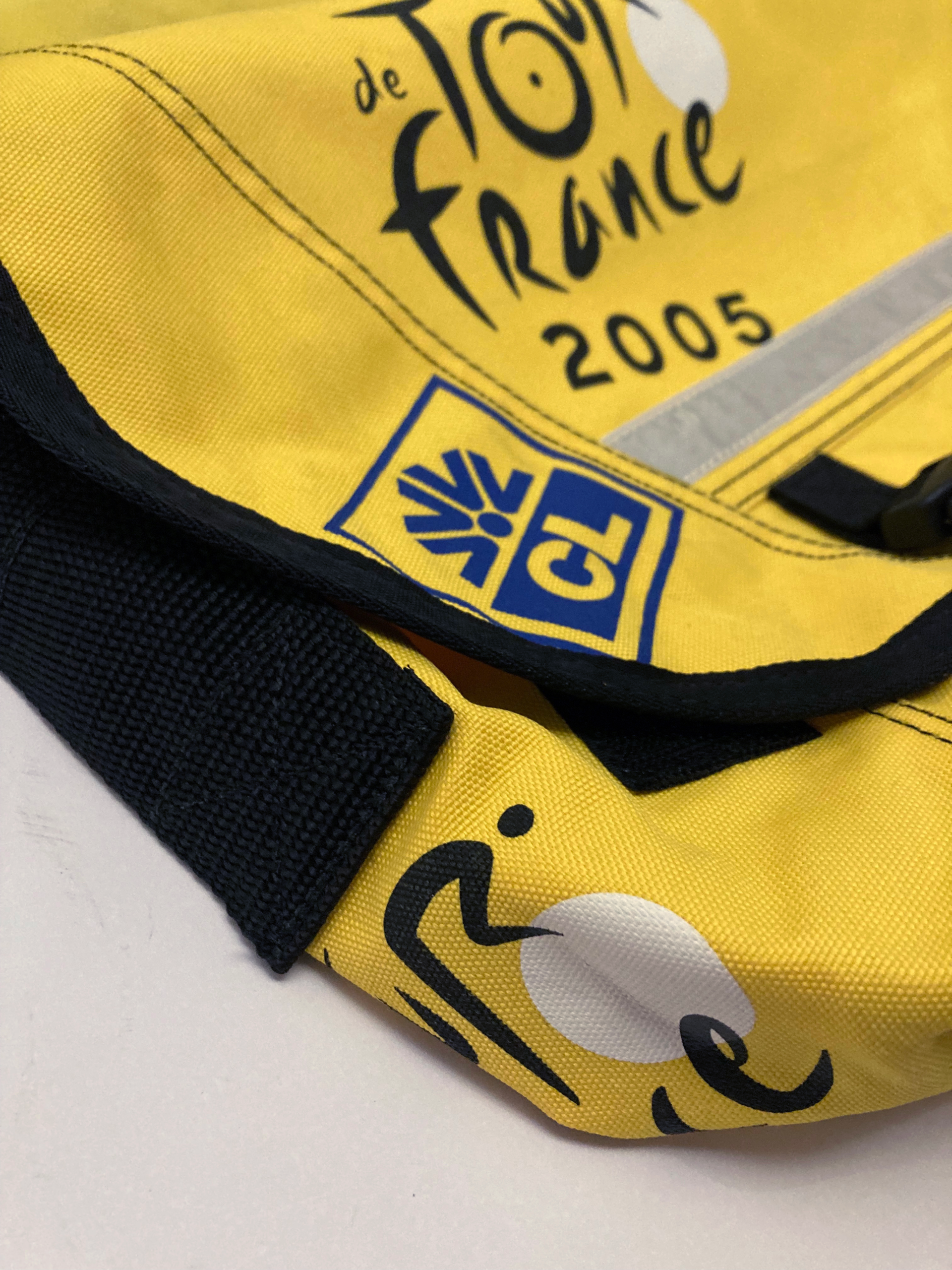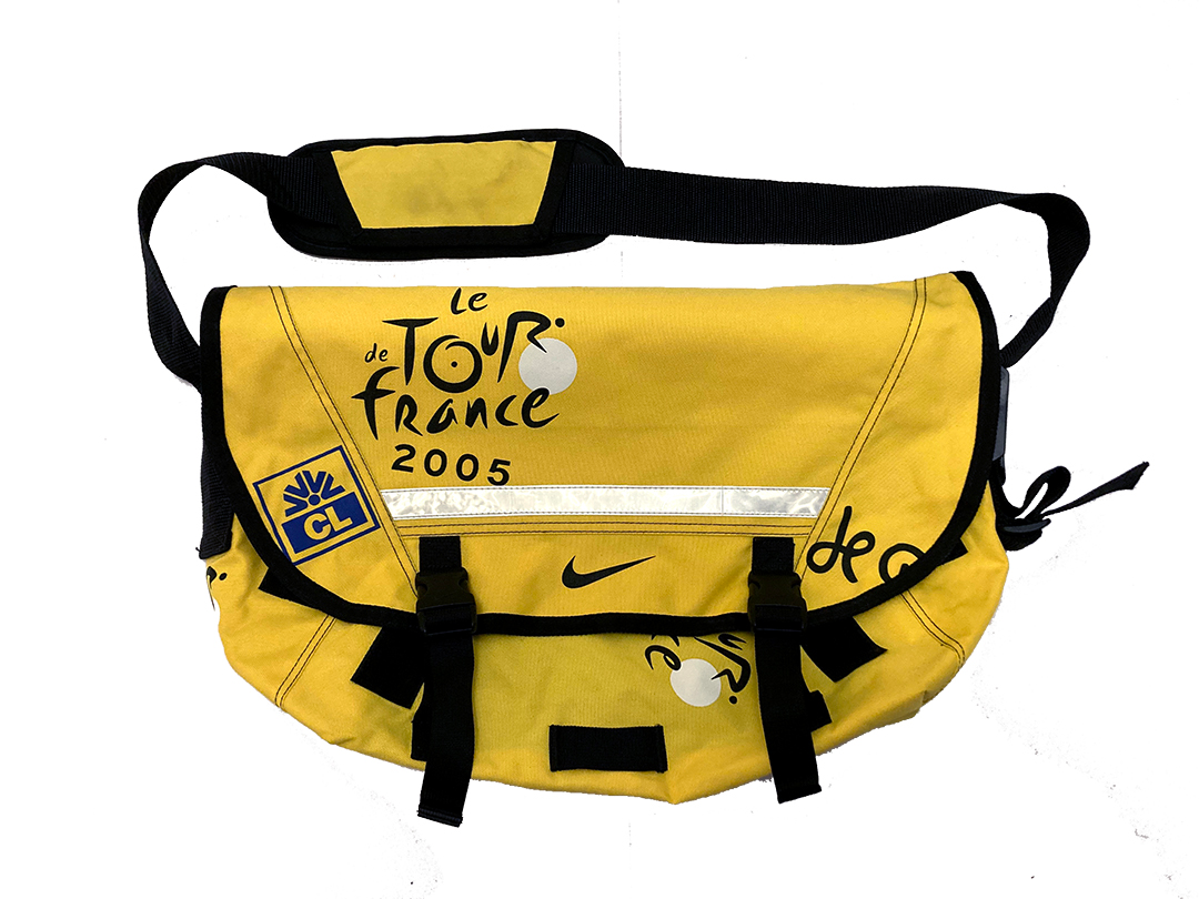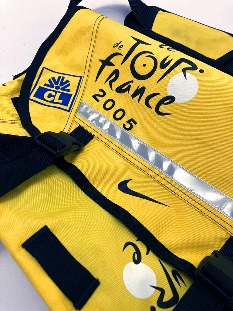 Authentic licensed Tour De France 2005 merch by Nike. New old stock, light wear from storage. Quality construction and all the features you’d expect from a commercial 00’s messenger bag. Medium/civilian size.