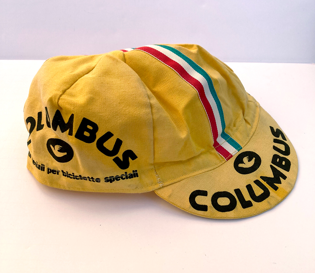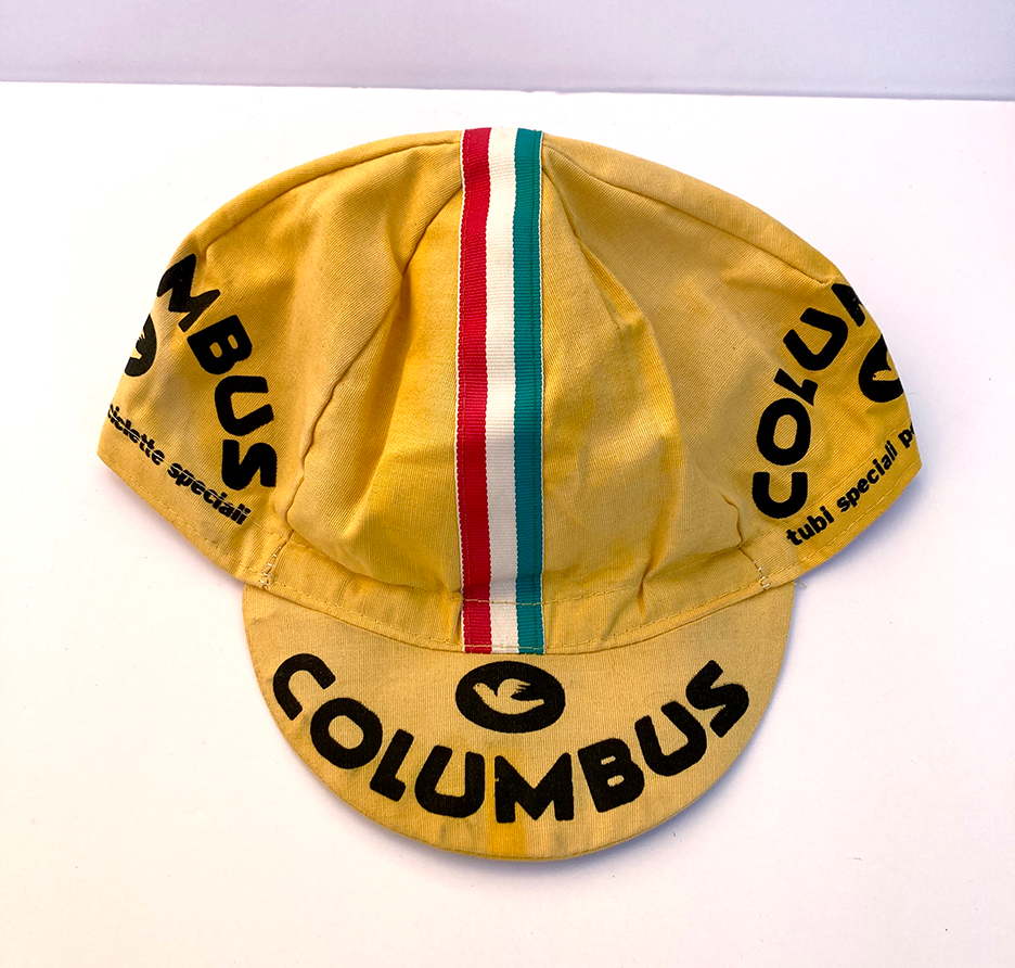 Amazing vintage Columbus Tubing rare yellow cycling cap, made in Italy. Old school large size.